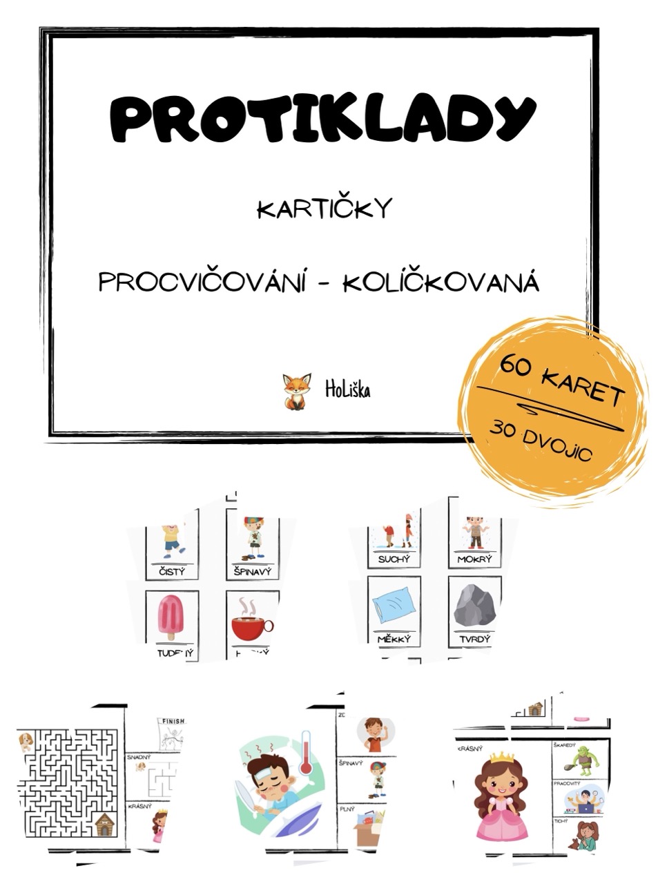 - Karty: 60 karet tvořících 30 dvojic protikladů. Karty lze použít k seznámení s protiklady, hledání dvojic nebo ke hře pexeso.